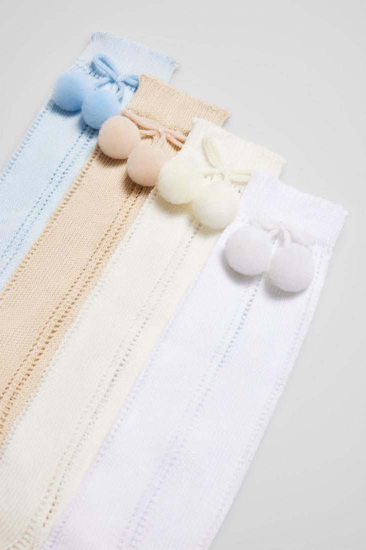 Calcetín de YSABEL MORA,  infantil BOLAS largo. Confeccionado con una novedosa fibra de algodón antialérgico gracias a las cuales obtendremos una sensación de bienestar inconfundible. Con puño antipresión. Ideal para looks más especiales y elegantes.