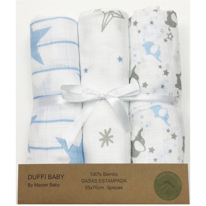 0787 GASAS O MUSELINA ESTAMPADA 100% BAMBU 55x70 (3pzs) DUFFI
