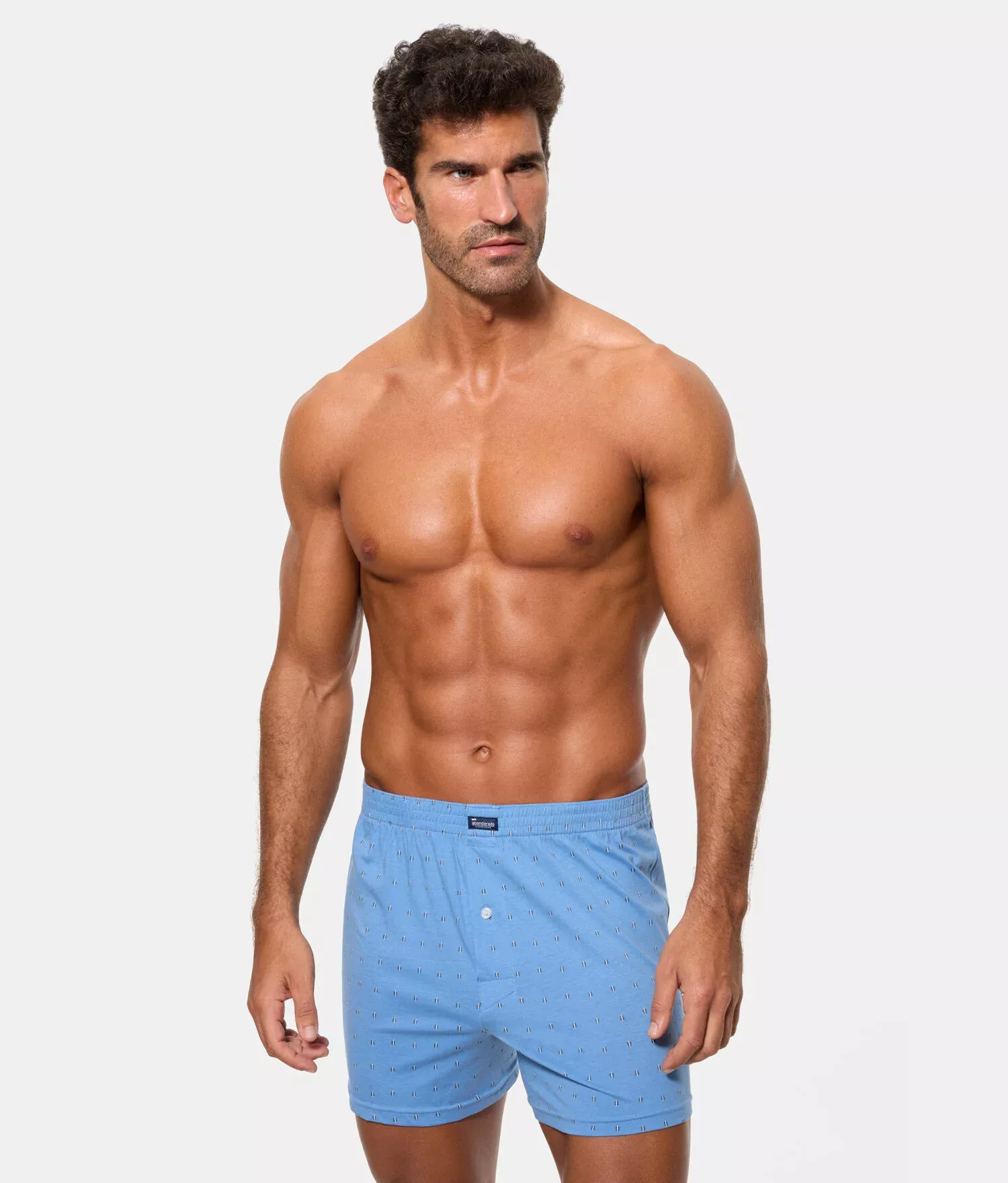 Pack de 2 boxer estampado en algodon con patrón clásico y boton. Confeccionados en algodón 100 % y estampados con diseños masculinos, sobrios y elegantes. Dispone de cintura con goma recubierta y tejido de punto liso. Abiertos en la parte frontal para garantizar la máxima comodidad y confort y con botón