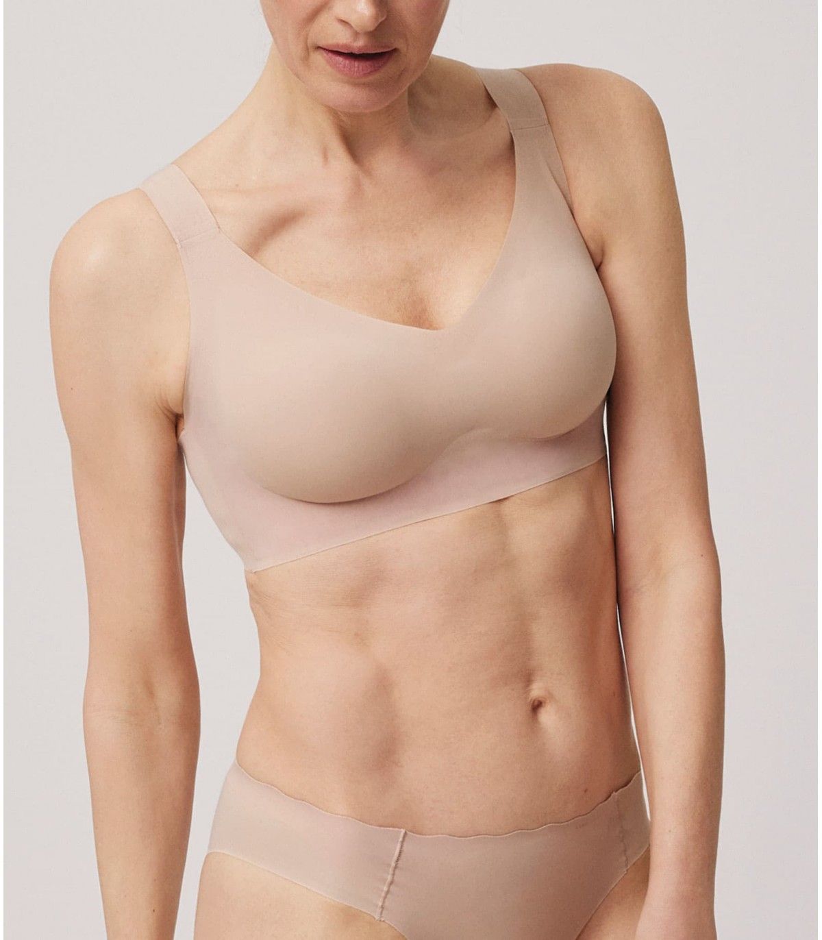 Sujetador sin costuras con relleno extraible y sin aros, acabados invisbles.