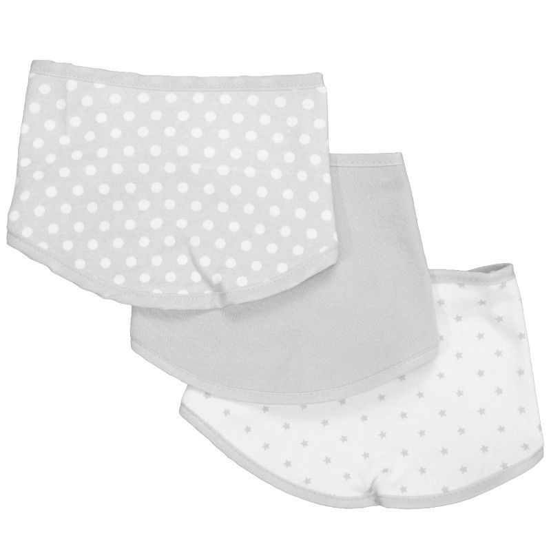 Baberos bandanas de la casa Gamberritos, tres piezas, estrellas, lunares y liso en el mismo pack.