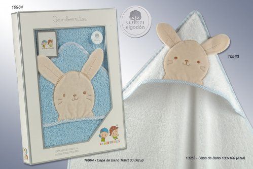 Capa de baño para bebe de 100X100 de la marca GAMBERRITOS con motivo de CONEJO
