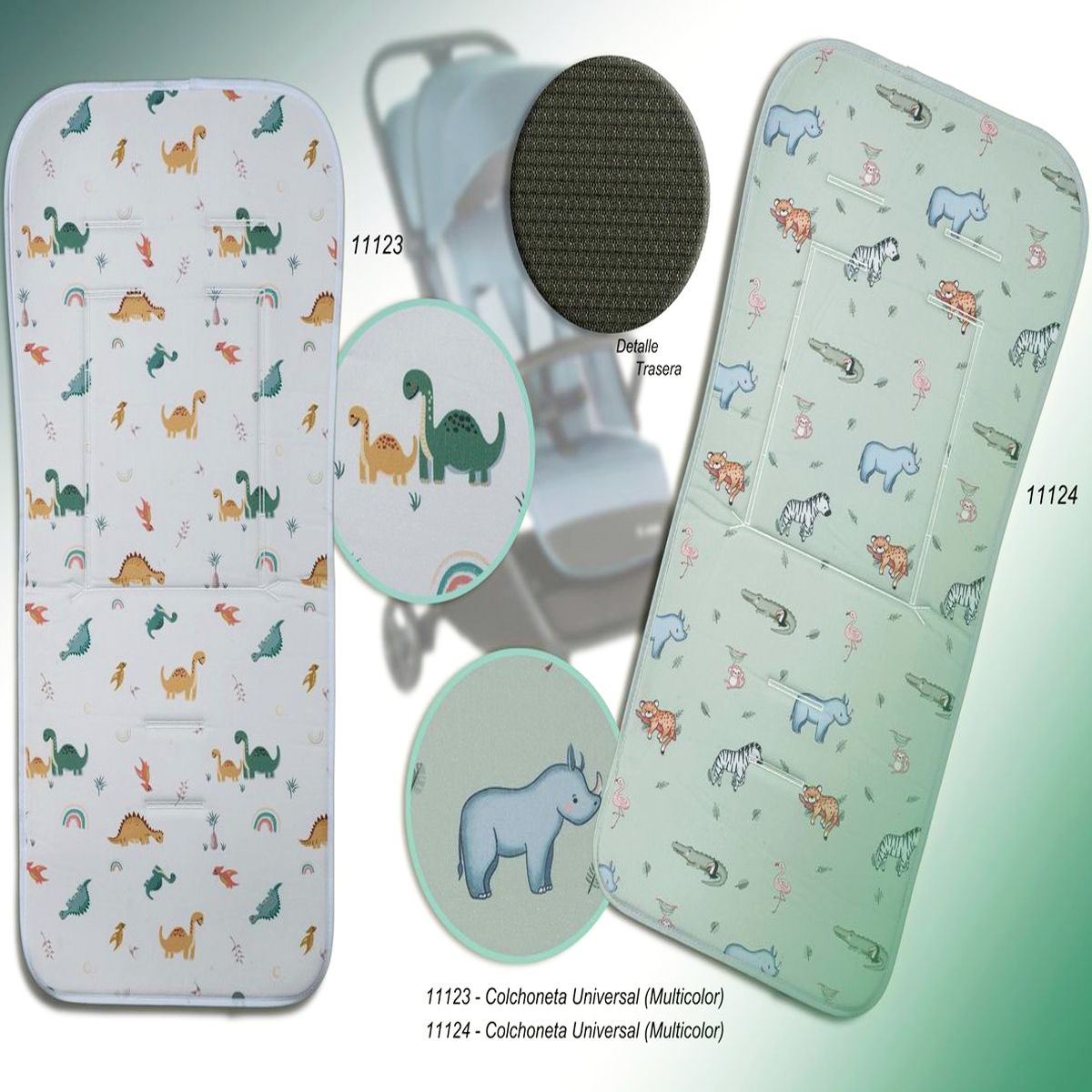 Colchoneta universal multicolor de la marca Gamberritos, facil lavado, con interior de espuma y exterior de poliéster. Adaptable a cualquier tipo de ansiento de bebe.