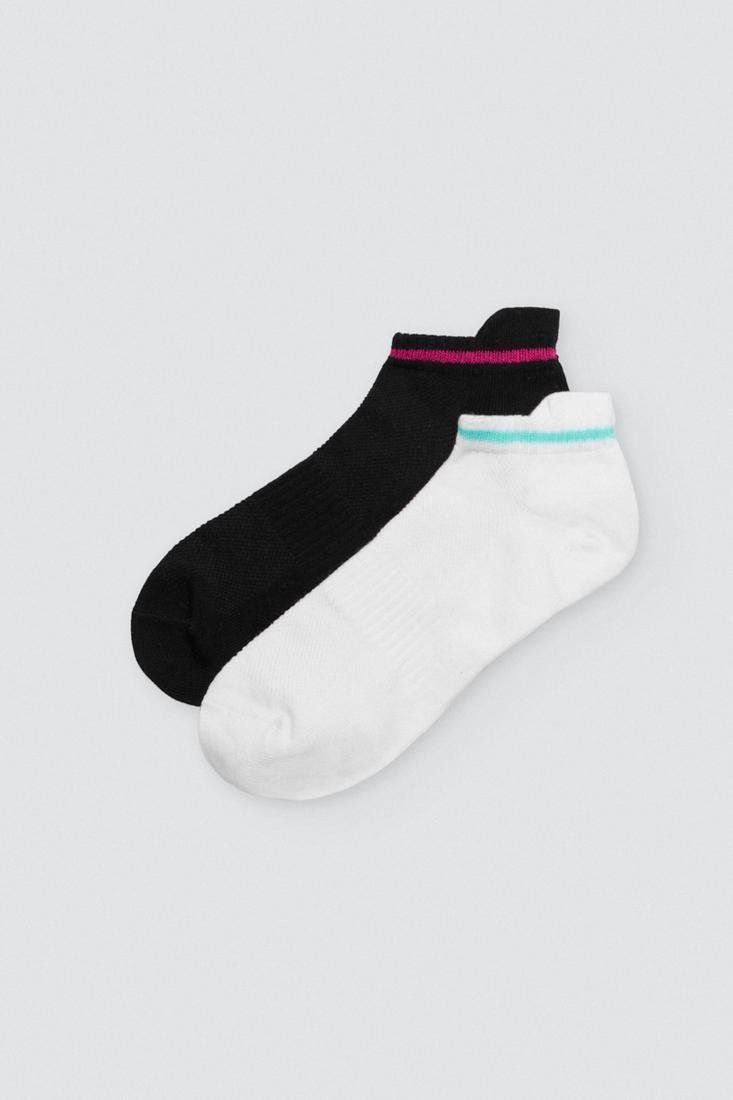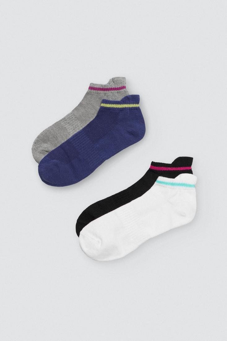 Pack de 2 calcetines deportivos invisibles transpirables para mujer. Confeccionados principalmente con algodón y puño antipresión para mayor comodidad y sujeción sin opresión.