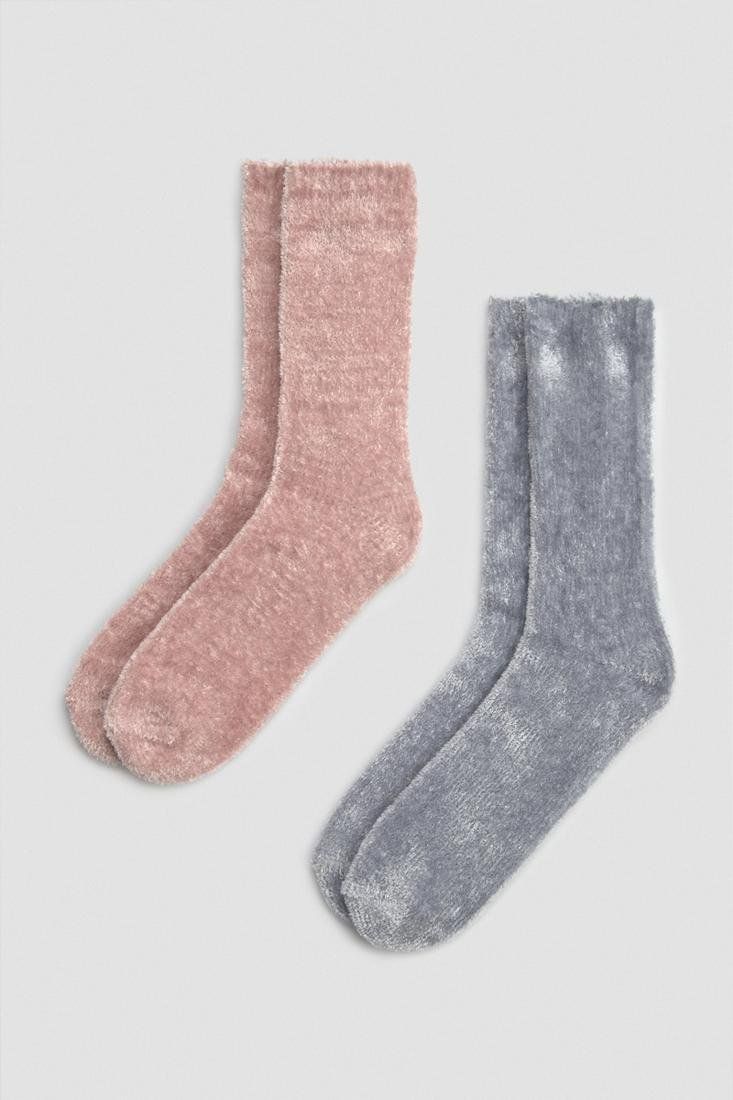 Calcetín mullido para mujer. Mantén tus pies calientes y cómodos con estos calcetines. Ideales para días de frío. Disponibles en colores azul y rosa.