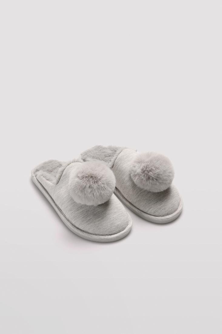 Zapatillas de casa para mujer destalonadas y con suela blanda. Detalle de pelo rizado y estampado liso. Interior cálido y acogedor.