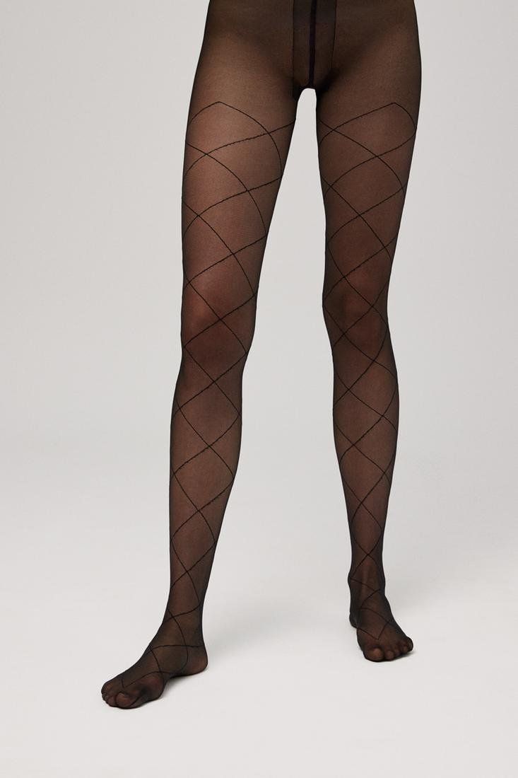 Panty 20 DEN de tendencia. Tejido en microred con rombos en linea.