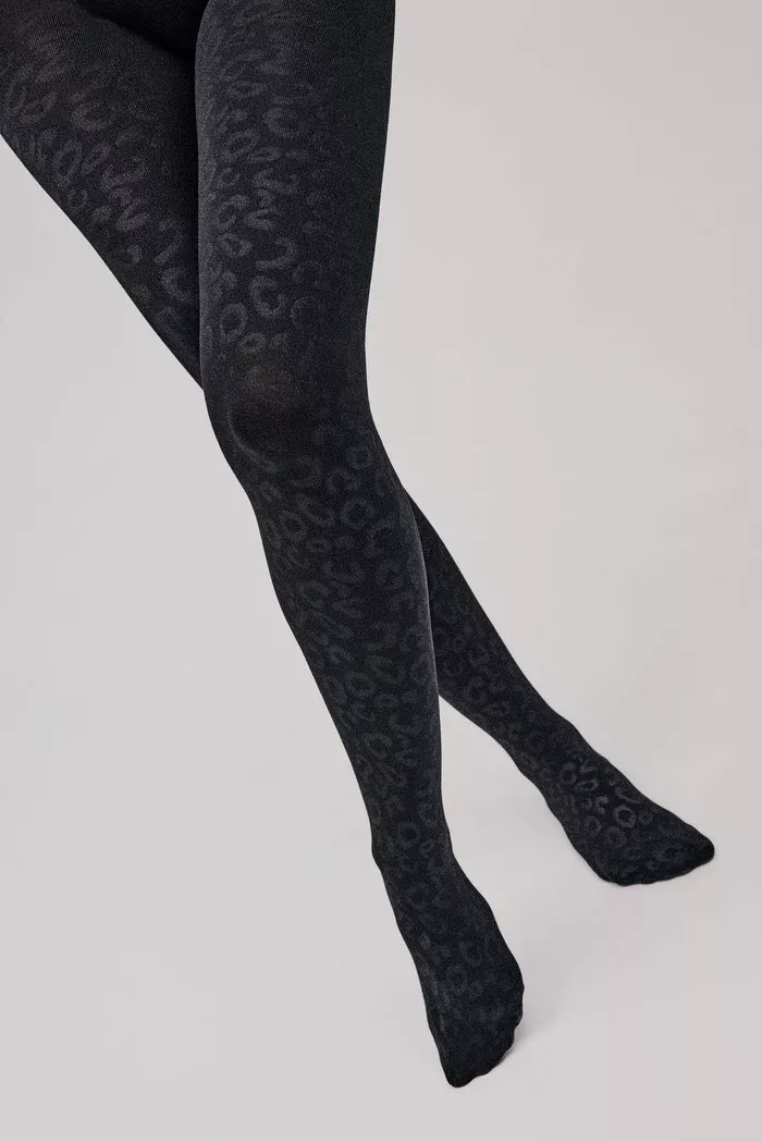 Panty térmico 140 deniers con efecto velado, interior afelpado. Este modelo tiene un estampado de leopardo.