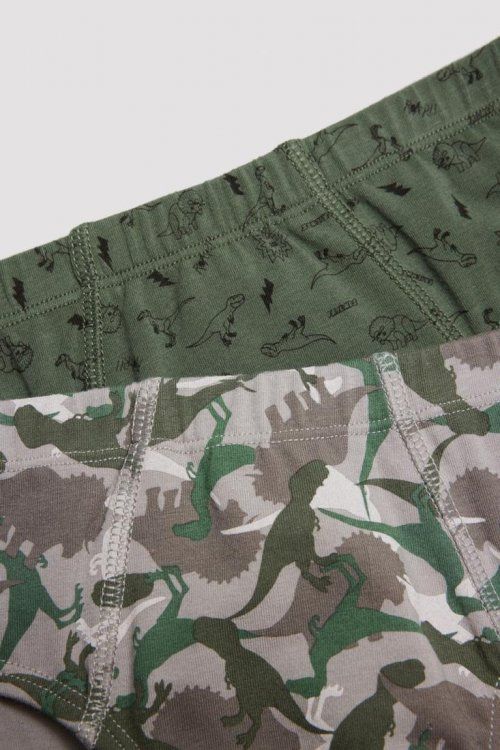 Calzoncillos Slip Infantil Pack de 2 de algodón natural. Diseño de dinosaurios.