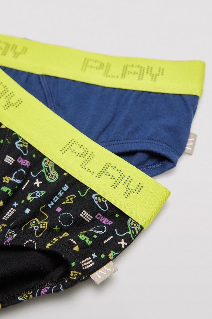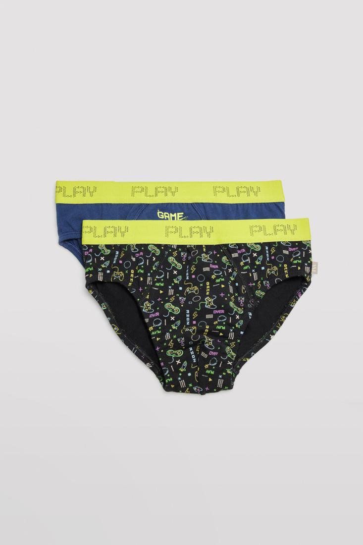 Game over. Pack de 2 calzoncillos slim para niño. Diseño divertido con con estampado de videojuegos en unos calzoncillos de color negro. Estos calzoncillos están confeccionados en algodón natural, lo que asegura una sensación suave y cómoda para la piel del niño. El estilo slim de estos calzoncillos ofrece una mayor ajuste al cuerpo y se adapta perfectamente a la figura del niño, brindando una sensación de seguridad y comodidad.