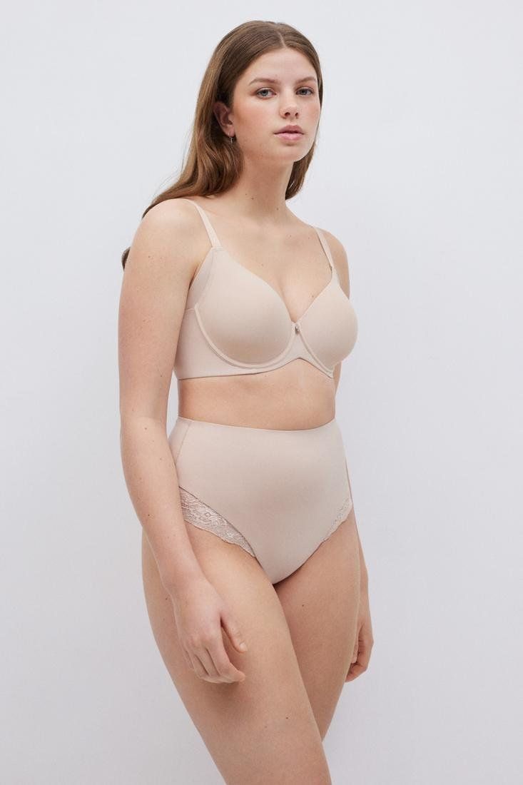 Tanga reductor con encaje de media compresión. Con este tanga sentirás la comodidad de llevar un tanga a la vez que mantienes un control eficaz sobre el bajo abdomen y las caderas.
