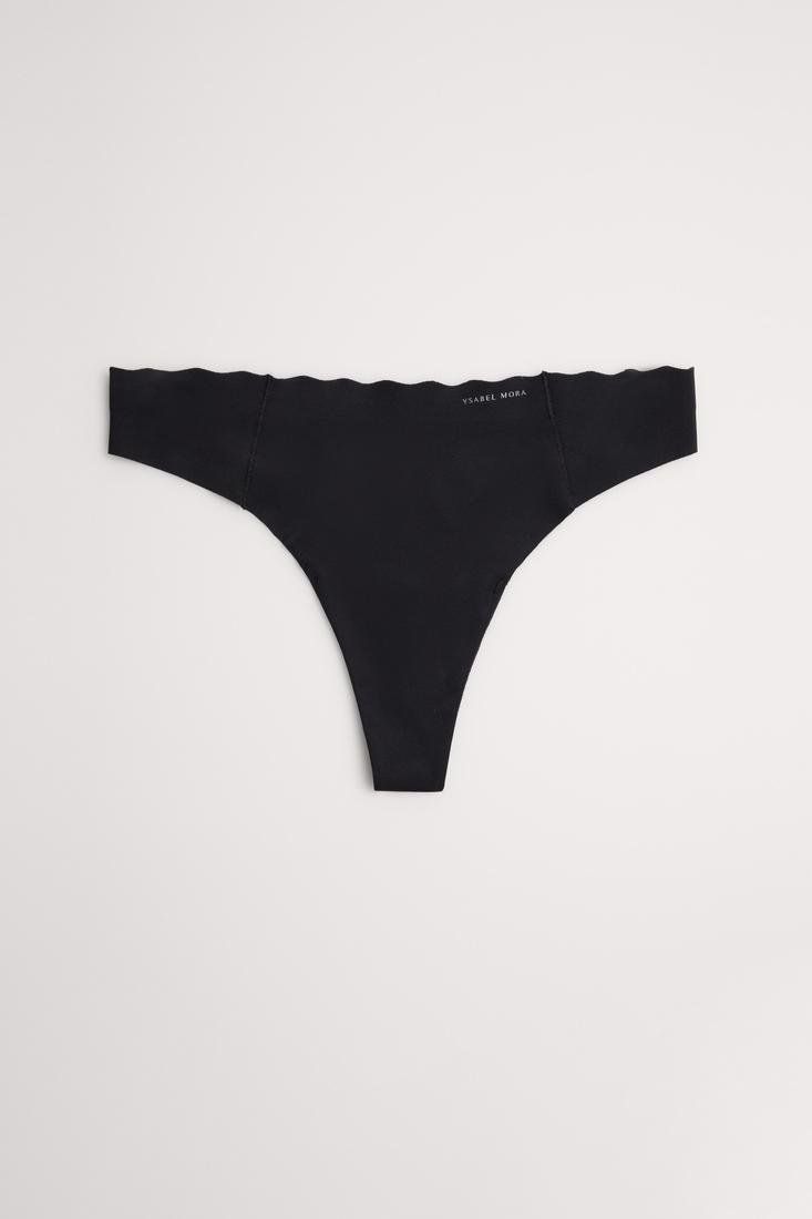 Corte láserTanga de tejido de microfibra cortado a láser con cinturilla ondulada y con costuras muy discretas que hacen que la prenda sea imperceptible bajo la ropa. La comodidad y sujeción de este tanga es algo a destacar.