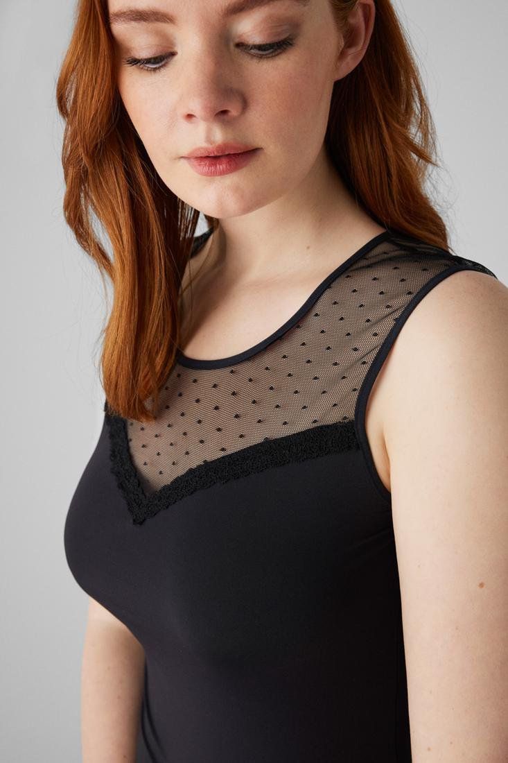 Blooming summer. Camiseta sin mangas. Tirantes y escote de encaje que aportan un toque femenino y sofisticado.