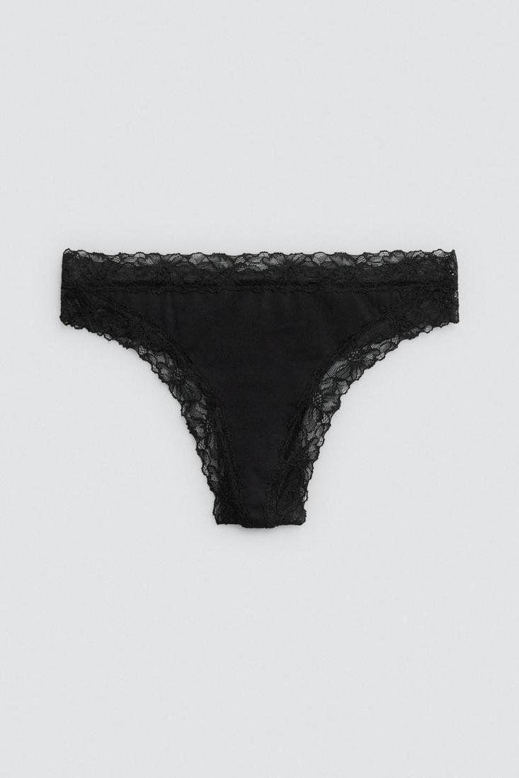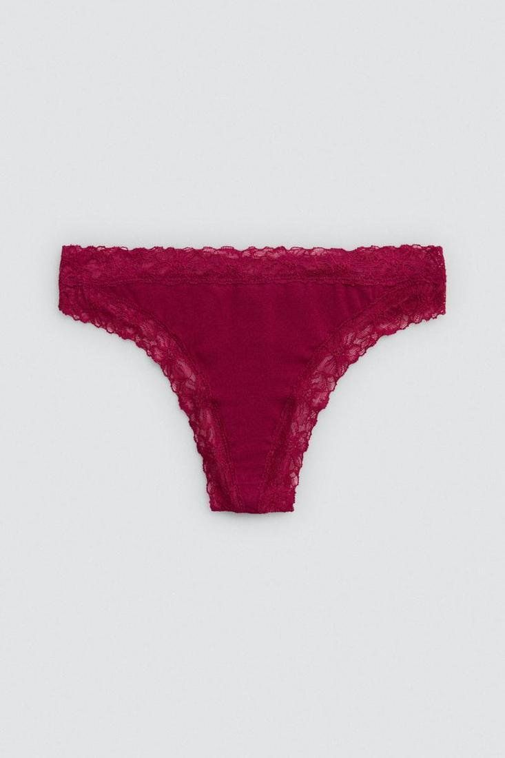 Tanga de algodón natural con detalle de encaje