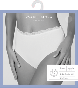 Braga de YSABEL MORA, maxi en tejido Cotton Nature. Las fibras naturales, aportan suavidad, y sus acabado con costuras planas invisibles, evitan las marcas y favorecen su adaptabilidad. Confeccionadas con tejido antialergénico.