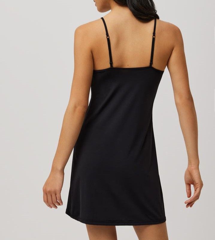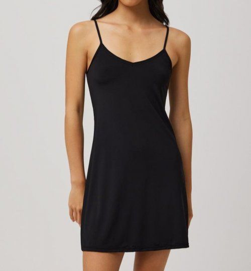 Combinación vestido básico de escote en "V" confeccionado en tejido de microfibra. Los tirantes son regulables para mayor comodidad y sujeción. Sensualidad para el día a día. Disponible en dos colores
