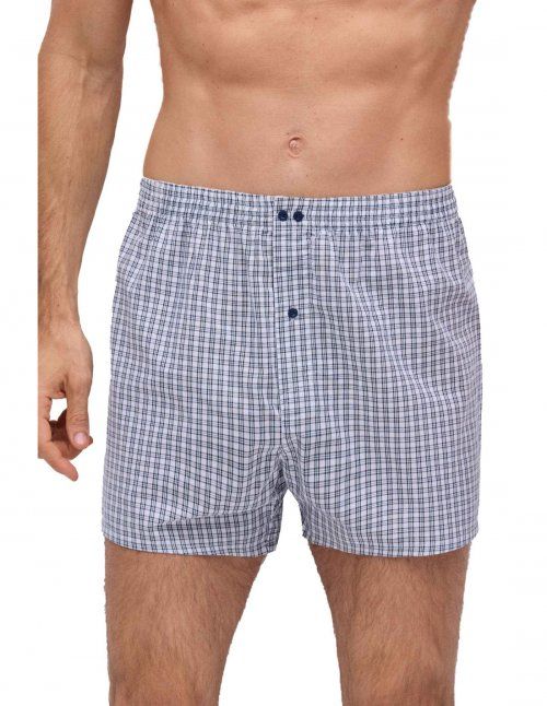 Bóxer de tela confeccionado con algodón natural, que proporciona una sensación suave y cómoda al contacto con la piel. Estampado de cuadros. Incluye una abertura frontal y cuenta con una banda elástica en la cintura.