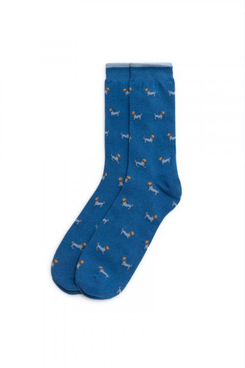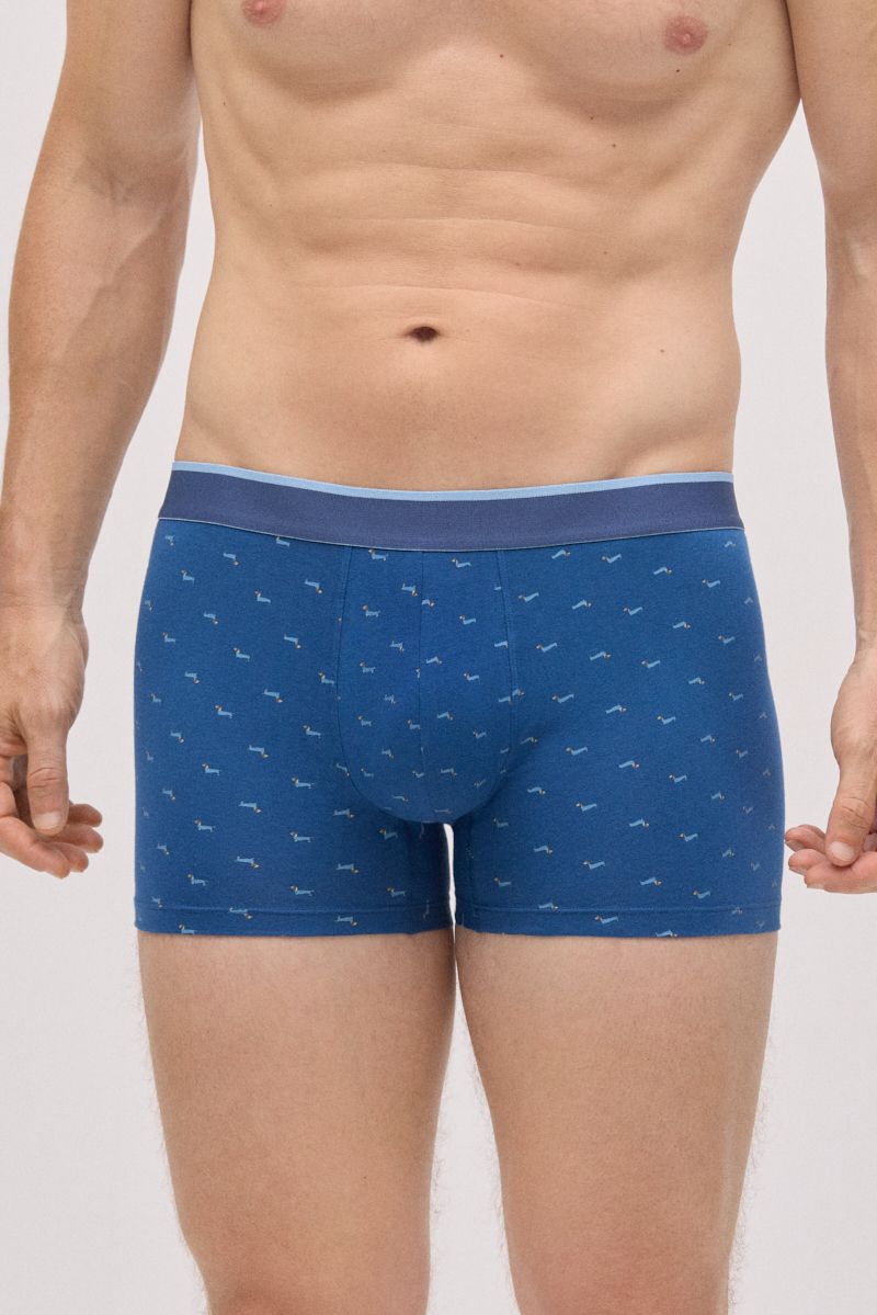 Pack regalo de un bóxer y un par de calcetines con estampado de perro salchicha. Bóxer de algodón natural