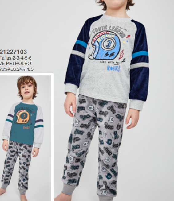 21227103 PIJAMA NIÑO TERCIOPELO 2 A 6 AÑOS TOBOGAN