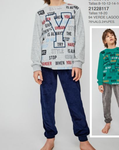 21228106 PIJAMA NIÑO 8 a 16 TERCIOPELO / 21228117 tallas 18 y 20 TOBOGAN