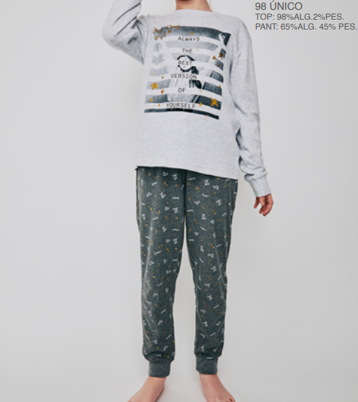 21228203 PIJAMA NIÑA 8 A 16 INTERLOCK / 21228210 TALLAS 18 Y 20 TOBOGAN