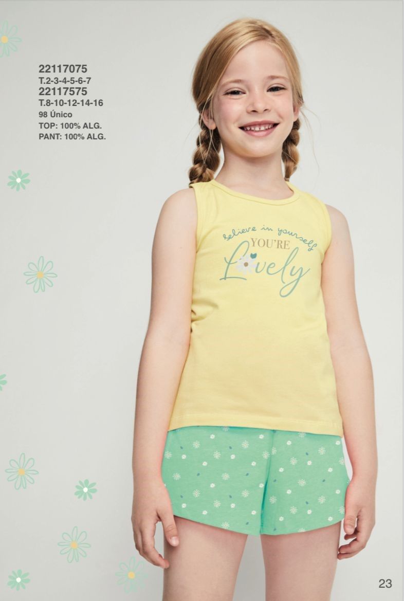 Pijama MANGA CORTA  y pantalon corto para niña de verano de la marca TOBOGAN.