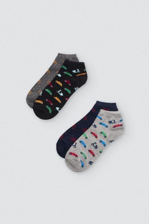 Pack de 2 calcetines invisibles para hombre. Confeccionados principalmente con algodón y puño antipresión para mayor comodidad y confort. Modelo disponible en estampados variados de coches.