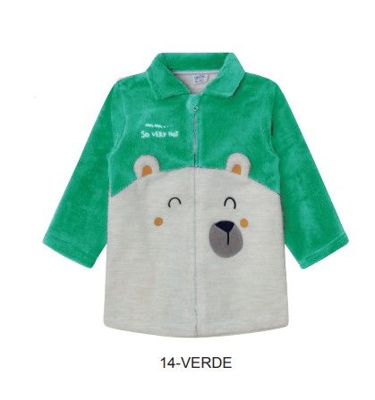 Bata para bebé niño de coralina muy suave, Muy calentita. con un bolsillo y abertura con cremallera.