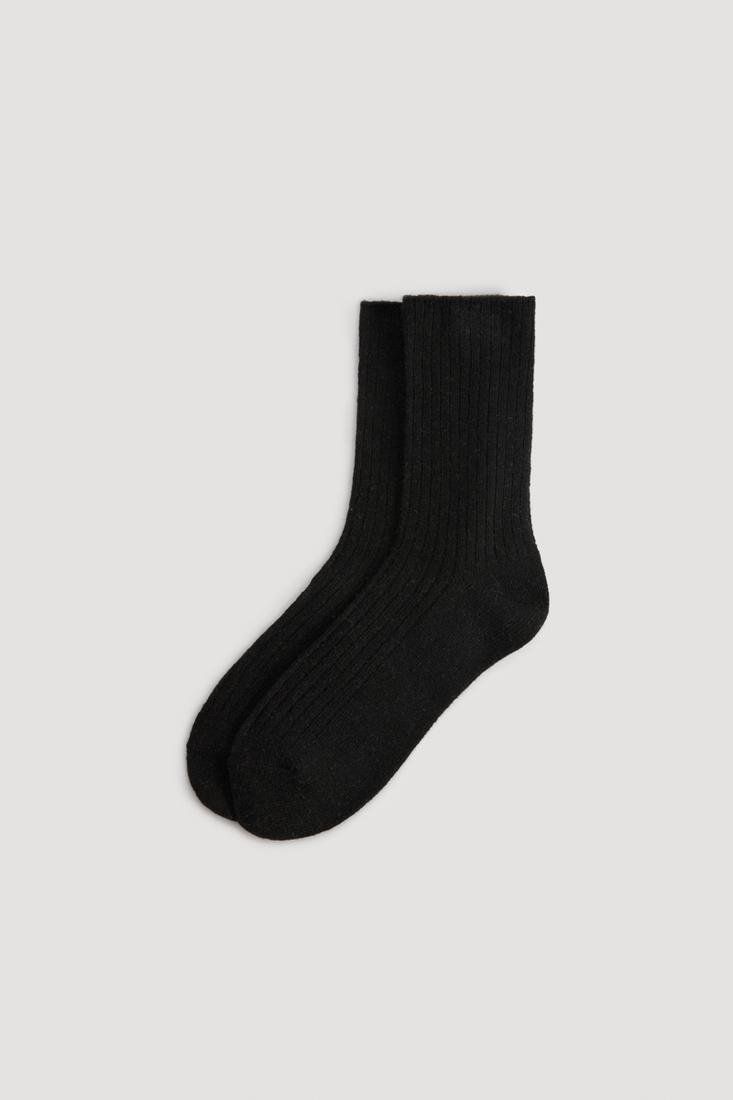 Calcetín sin puño acanalado de hombre tejido en lana . Retiene el calor corporal garantizando una agradable sensación de bienestar.