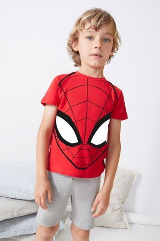 Pijama manga corta y pantalon corto para niño de verano de la marca TOBOGAN con estampado de Spiderman