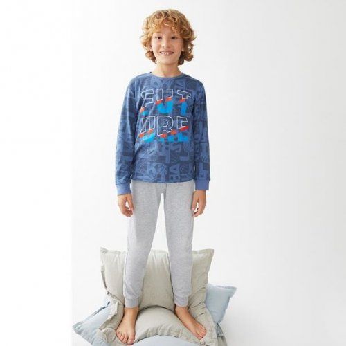 Pijama algodón INTERLOCK manga larga y pantalon largo para niño de invierno de la marca TOBOGAN.