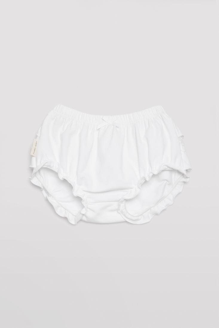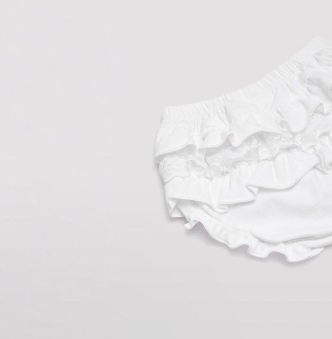Braga básica de algodón para bebé. Cubrepañal transpirable y suave. Volantes traseros.