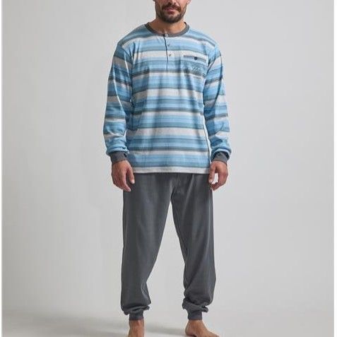 Pijama de manga larga y pantalón largo de caballero algodon interlock de la marca Diassi.