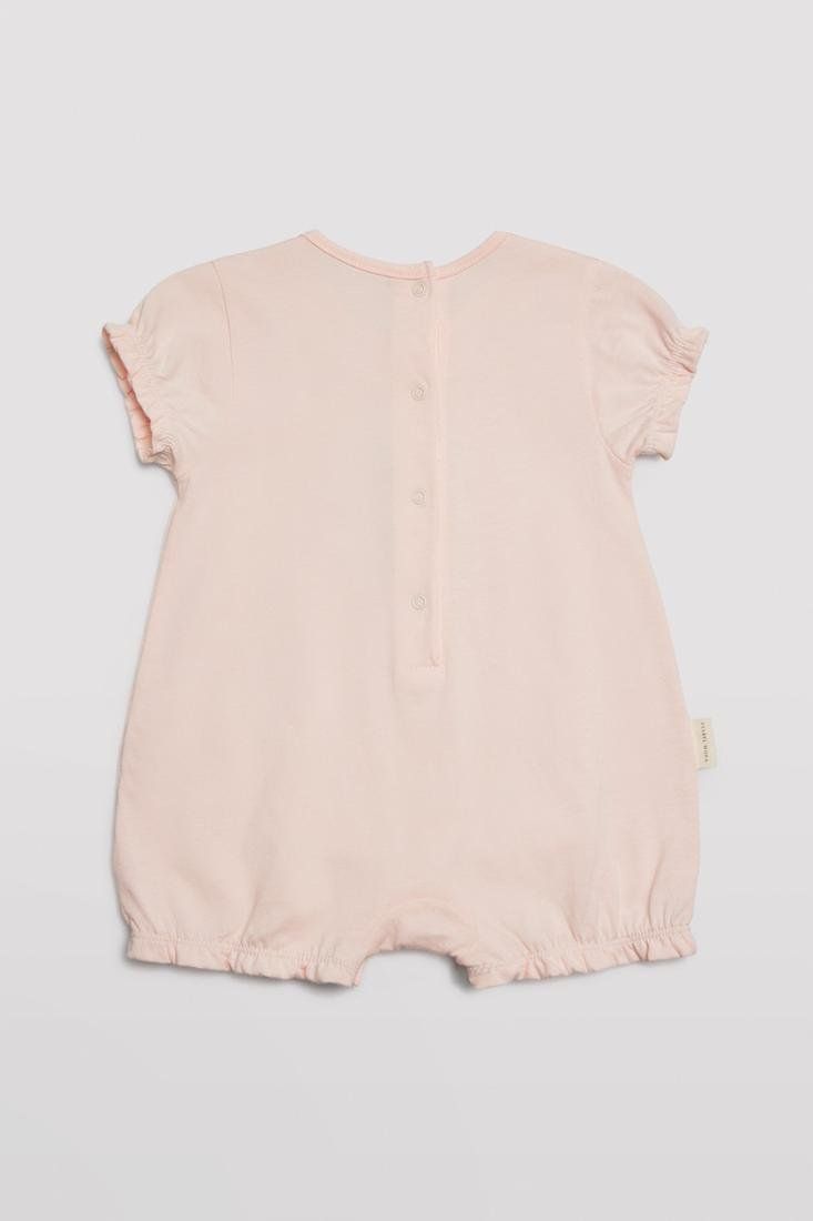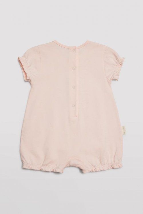 Boho forest. Pelele de manga corta color rosa con un conejito estampado en la parte delantera. Se trata de una sola pieza confecccionada con algodón 100% natural. Es ideal para el uso diario y es fácil de lavar y mantener. El diseño de manga corta es perfecto para días más cálidos o para cuando se necesita una prenda más fresca. La prenda también cuenta con botones en la parte inferior para facilitar el cambio de pañales del bebé.
