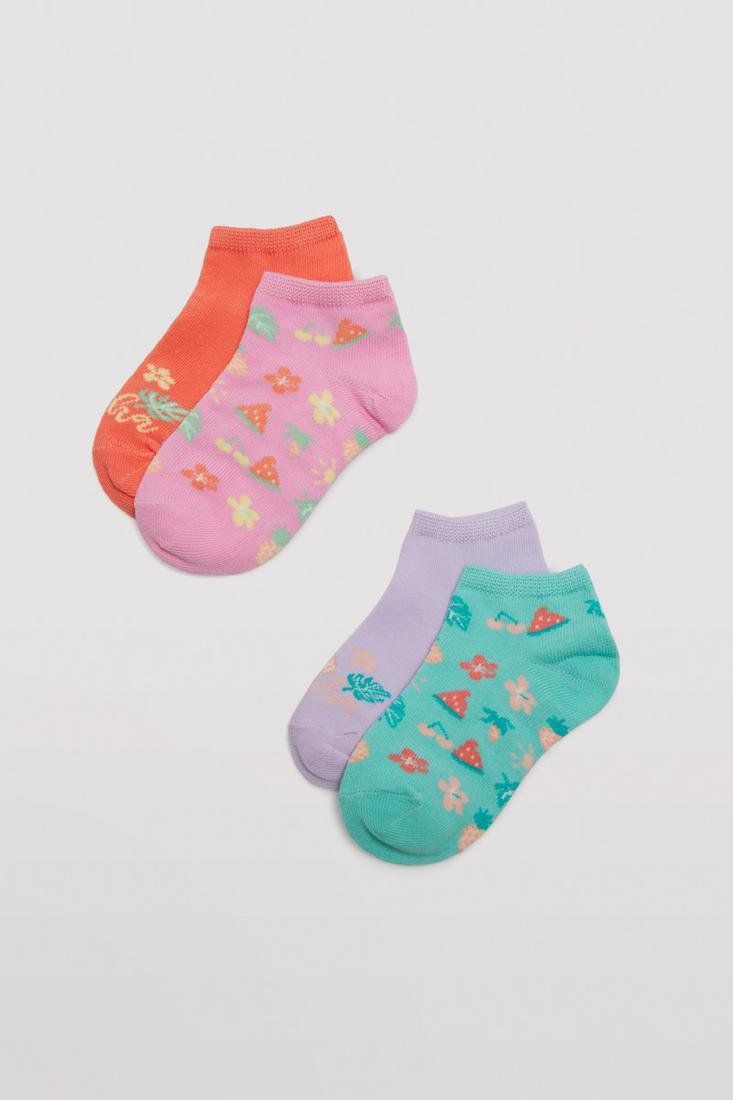 Summertime. Pack de 2 pares de calcetines invisibles para niña tejidos en suave algodón. Puños antipresión para mayor comodidad. Estampado alegre y veraniego con un diseño muy tropical.