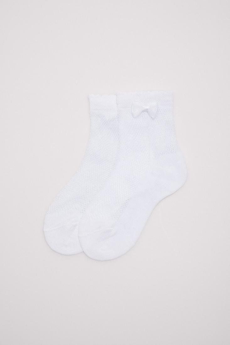 Calcetín infantil para niña ideal para un evento o momento especial. Confeccinado con algodón y cuenta con detalle de lazo en el lateral.