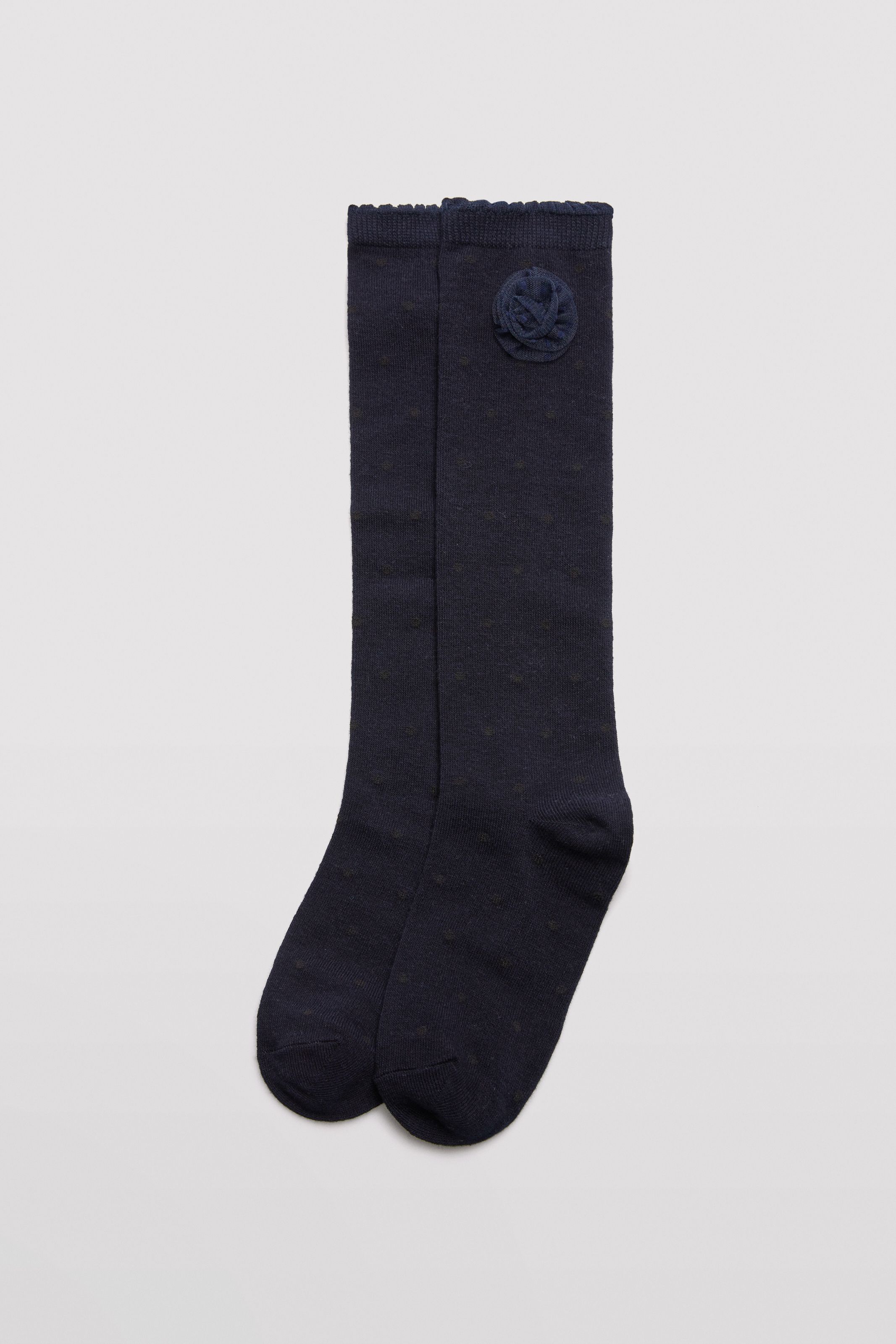 Calcetines extra largos para niña confeccionados con algodón. Puño antipresión para sujeción sin opresión.
