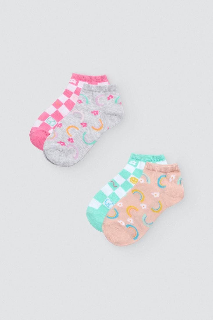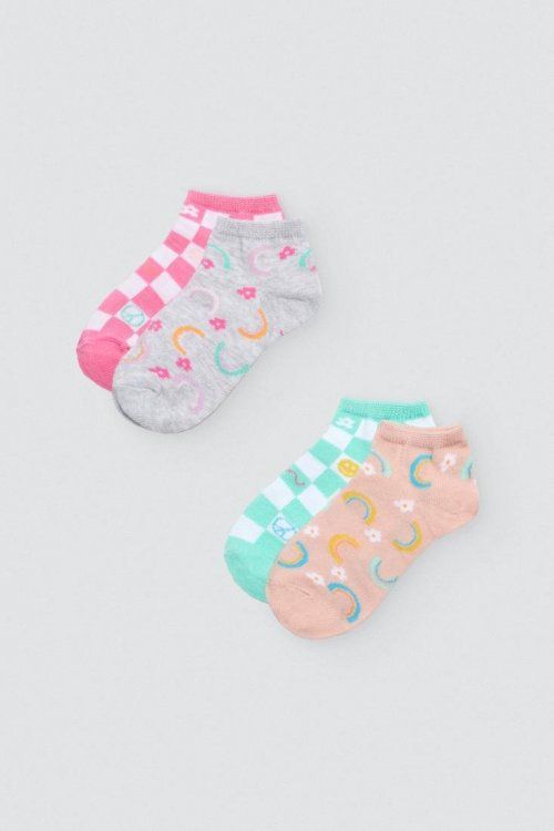 Pack de 2 pares de calcetines invisibles para niña. Confeccionados con algodón y puño antipresión para una mayor comodidad. Estampado fantasía y tejido veraniego. Ideal para uso diario.