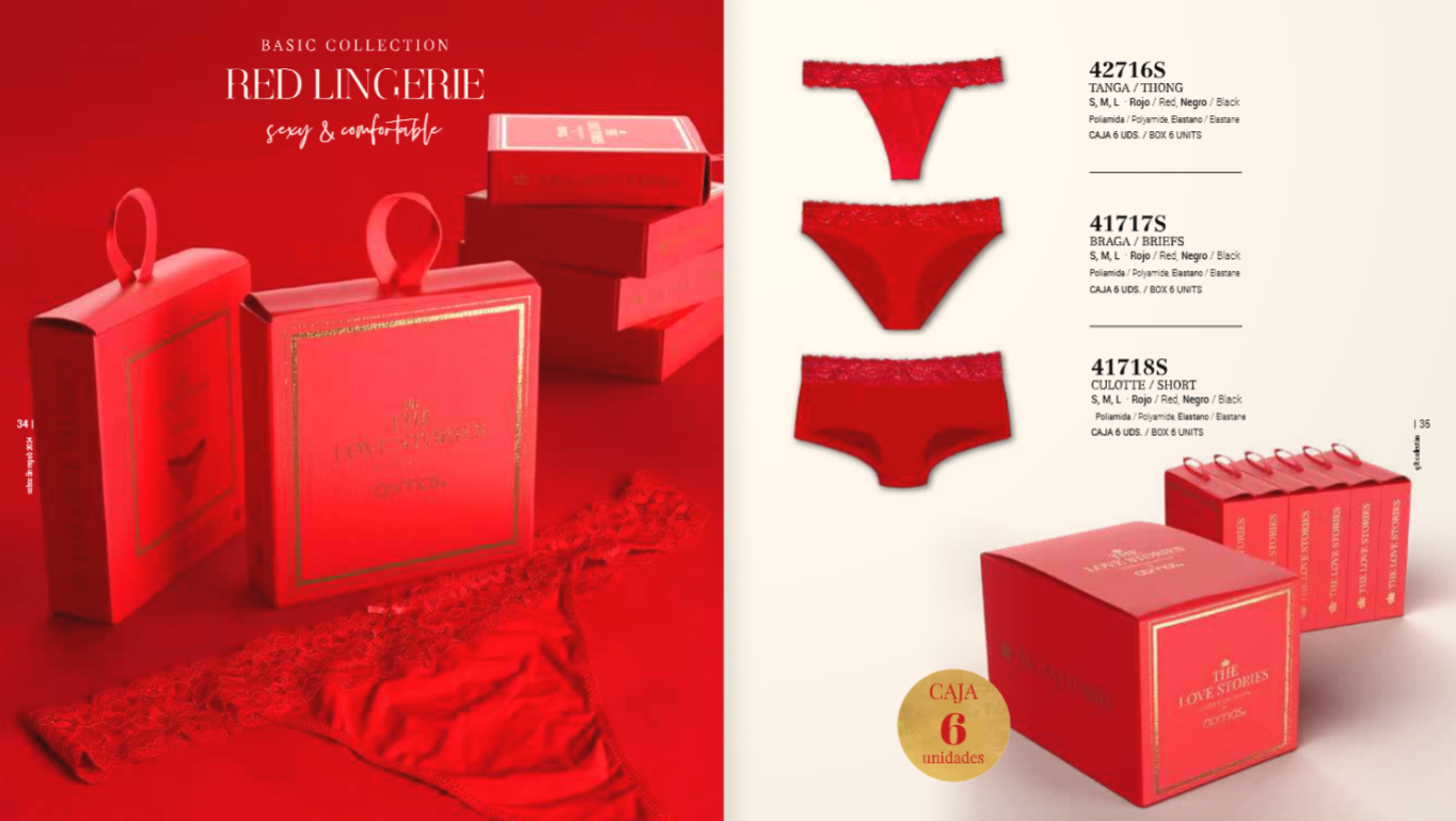 Braguita basica en poliamida y elastano con encaje en la parte de la cintura, vienene en cajitas rojas bonitas individuales (según foto).
