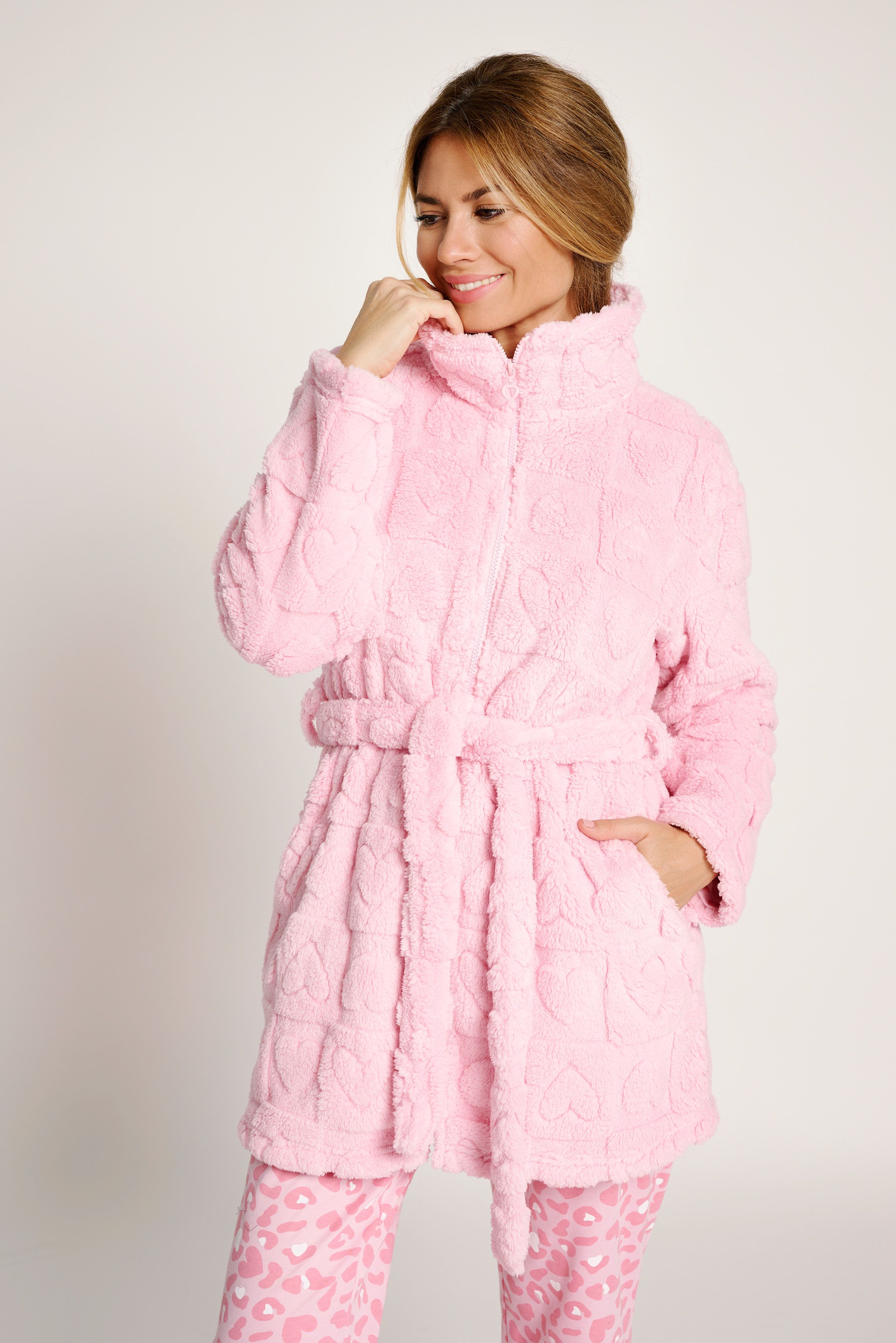 Bata de la marca MUYDEMI, en coralina.
