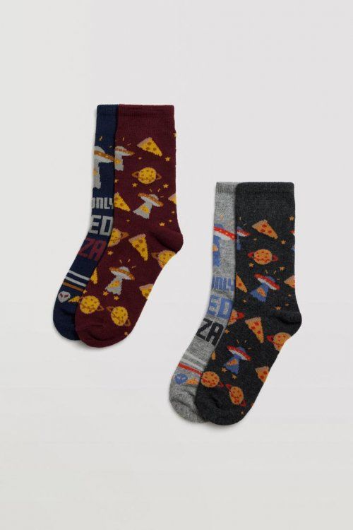 Calcetín de niño pack de 2. Confeccionado en algodón suave. Su textura favorece la transpiración del pie dándole una sensación de frescura y bienestar. Con puño antipresión para mayor sujeción sin opresión. Cómodo, fresco y natural.