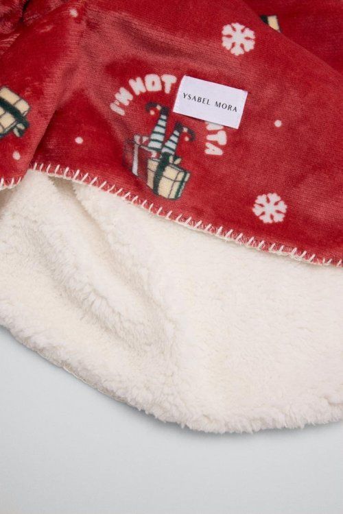 Colección Navidad. Manta de 160 x 130 cm estampada con interior de pelo.