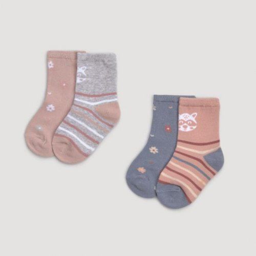 Pack de 2 calcetines para bebé tejidos en algodón. Diseños florales y de animales con colores suaves con puño especial antipresión.