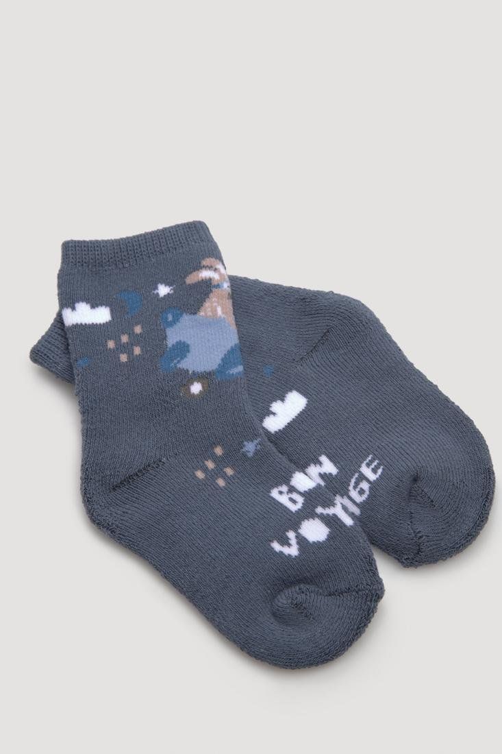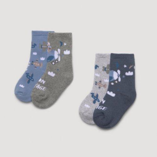 Pack de 2 calcetines térmicos para bebé tejidos en algodón. Diseños viajeros que enamoran de colores azul y gris.