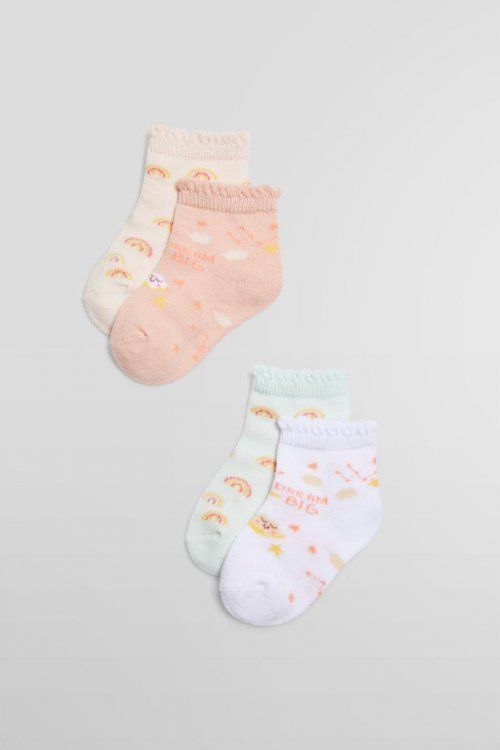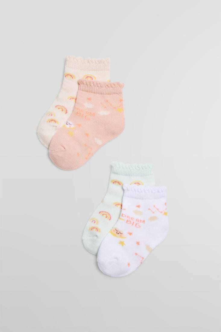 Summertime. Calcetines tobilleros para bebé tejidos en suave algodón. Puños antipresión para mayor comodidad y confort. Estampado alegre y divertido que da color a los más peques de la casa.