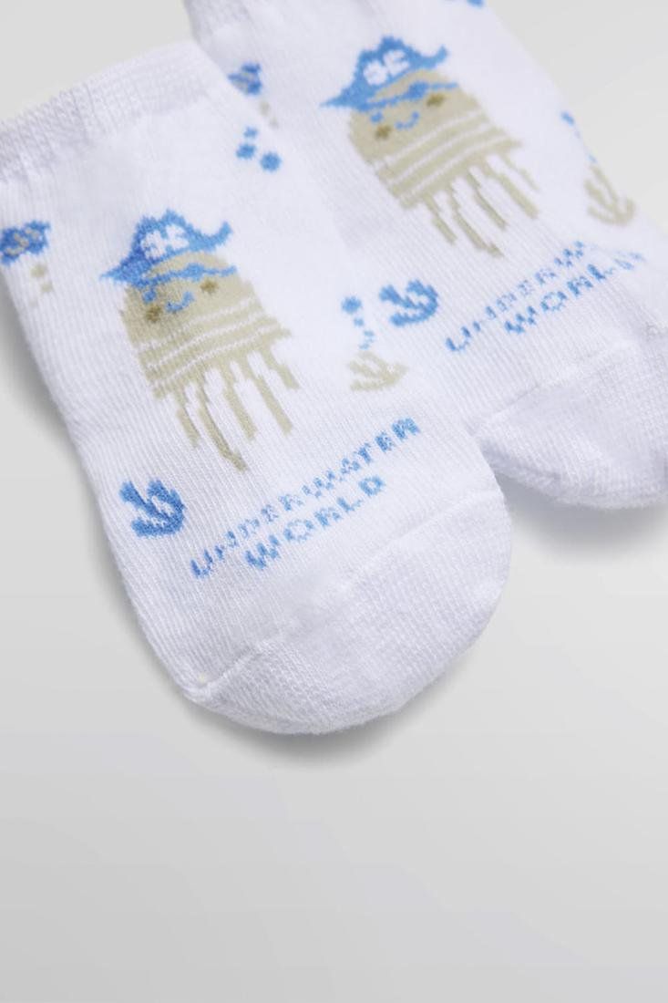 Summertime. Calcetines tobilleros para bebé tejidos en suave algodón. Puños antipresión para mayor comodidad y confort. Estampado alegre y divertido que da color a los más peques de la casa.