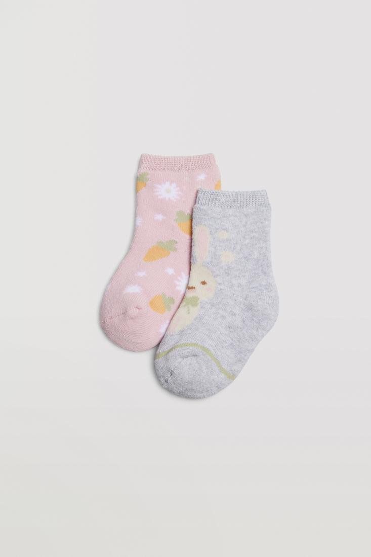 Calcetín de bebé pack de 2 con tejido de algodón suave. Puño antipresión para mayor sujeción sin opresión. Su interior térmico lo convierte en el accesorio perfecto para los días más fríos.