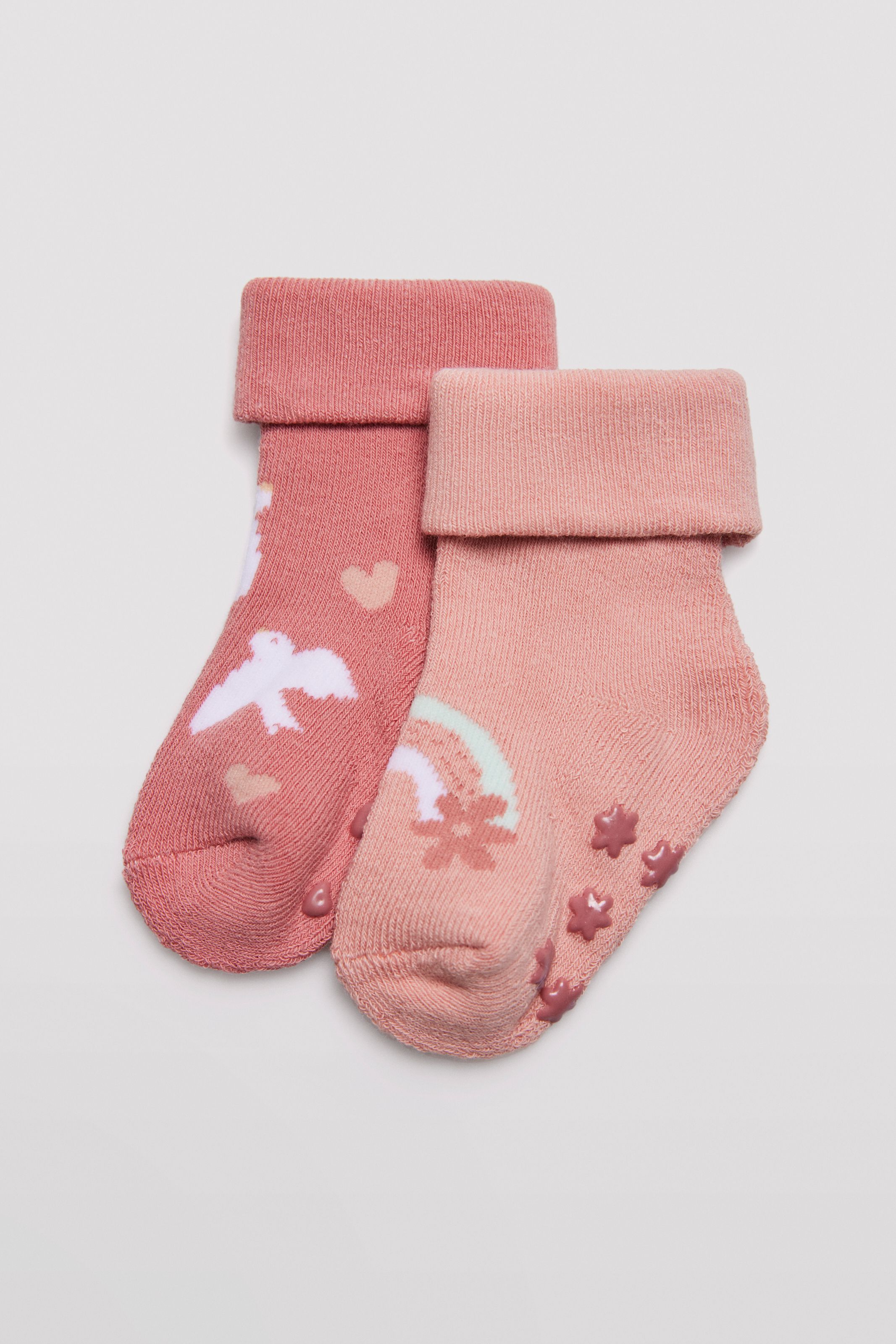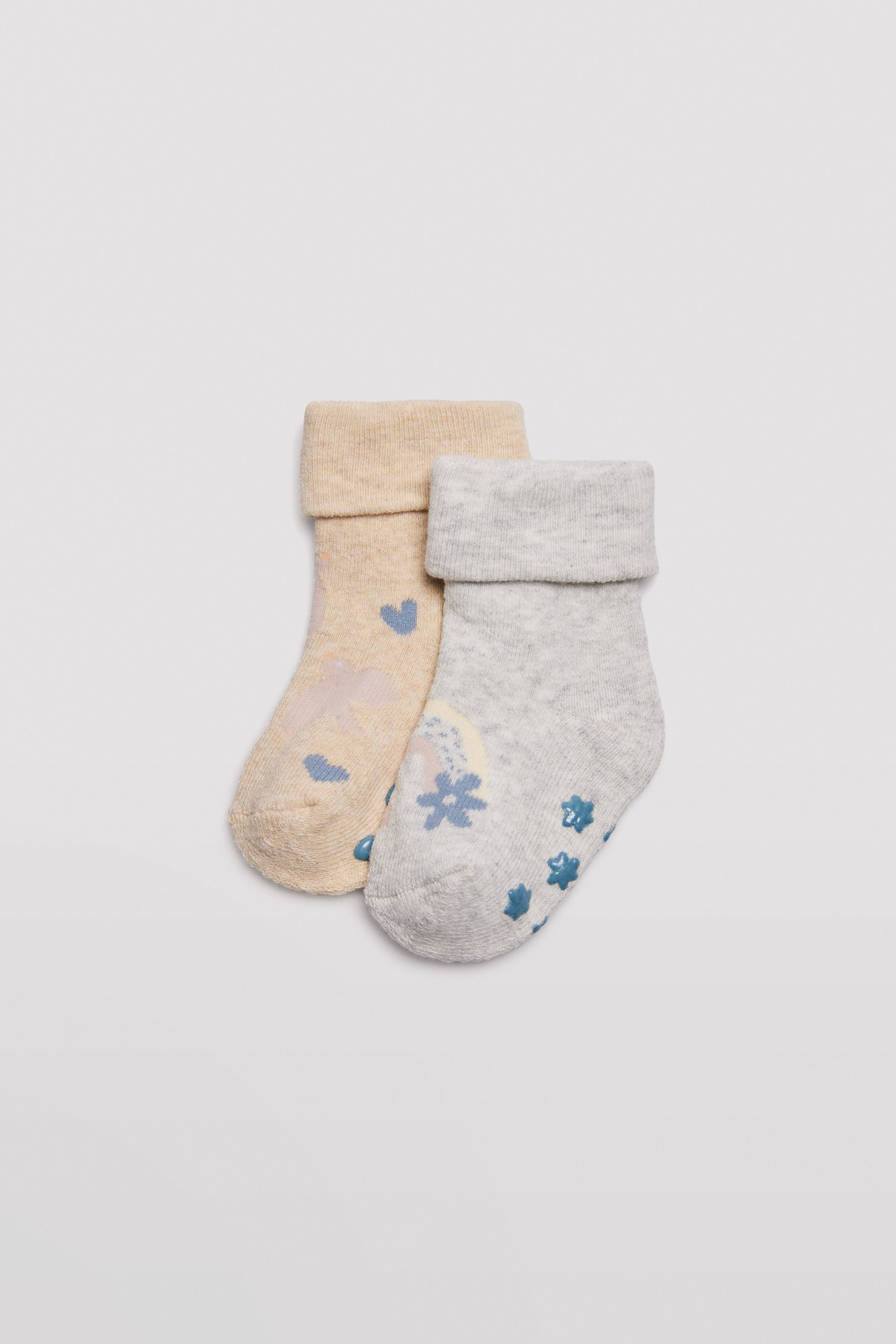 Pack de 2 pares de calcetines de bebé térmicos confeccionados con algodón.Antideslizante gracias a la silicona en la suela. Puño antipresión para máxima comodidad. Perfectos para los días fríos de invierno.