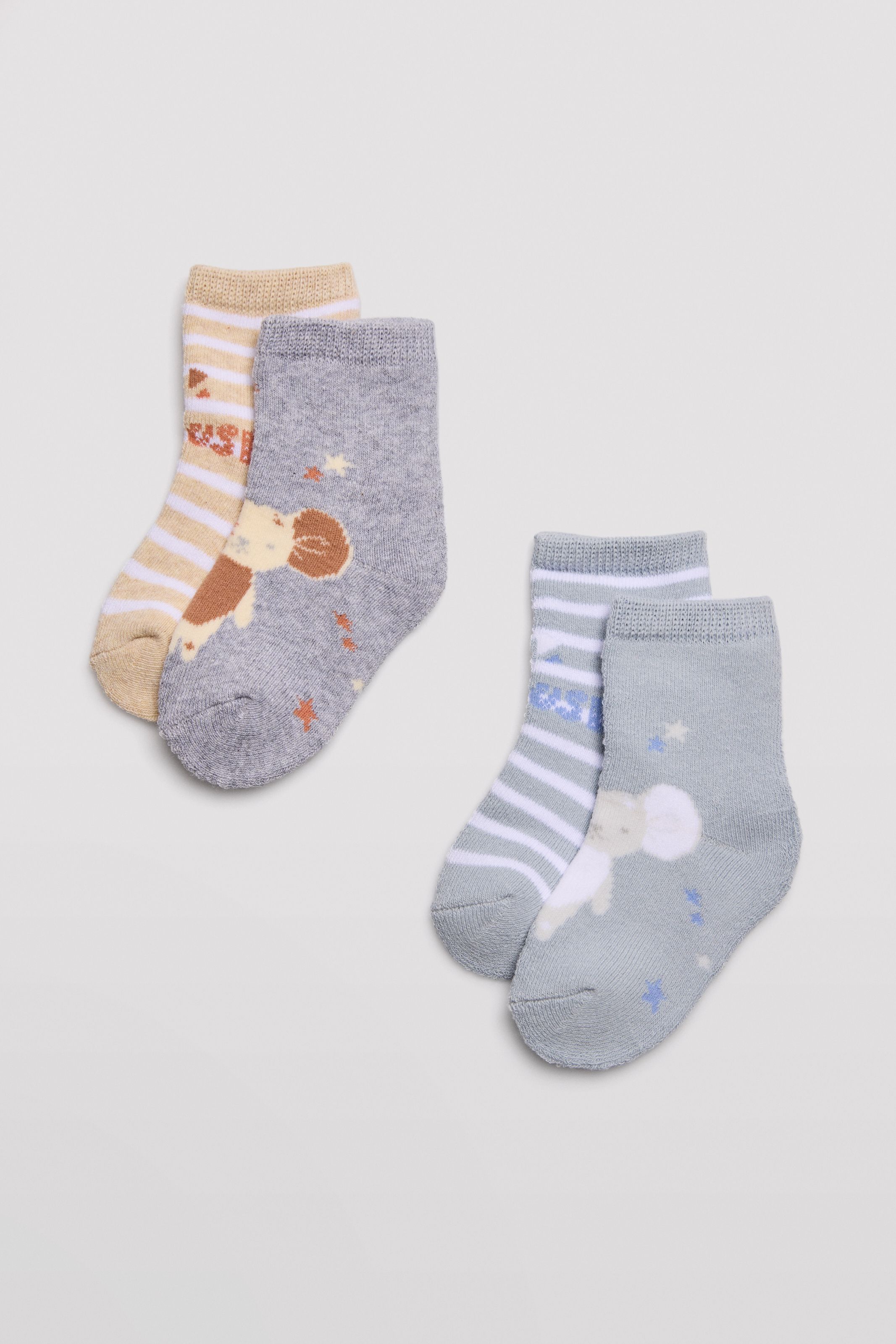 Pack de 2 pares de calcetines de bebé térmicos confeccionados con algodón. Puño antipresión para máxima comodidad. Perfectos para los días fríos de invierno.