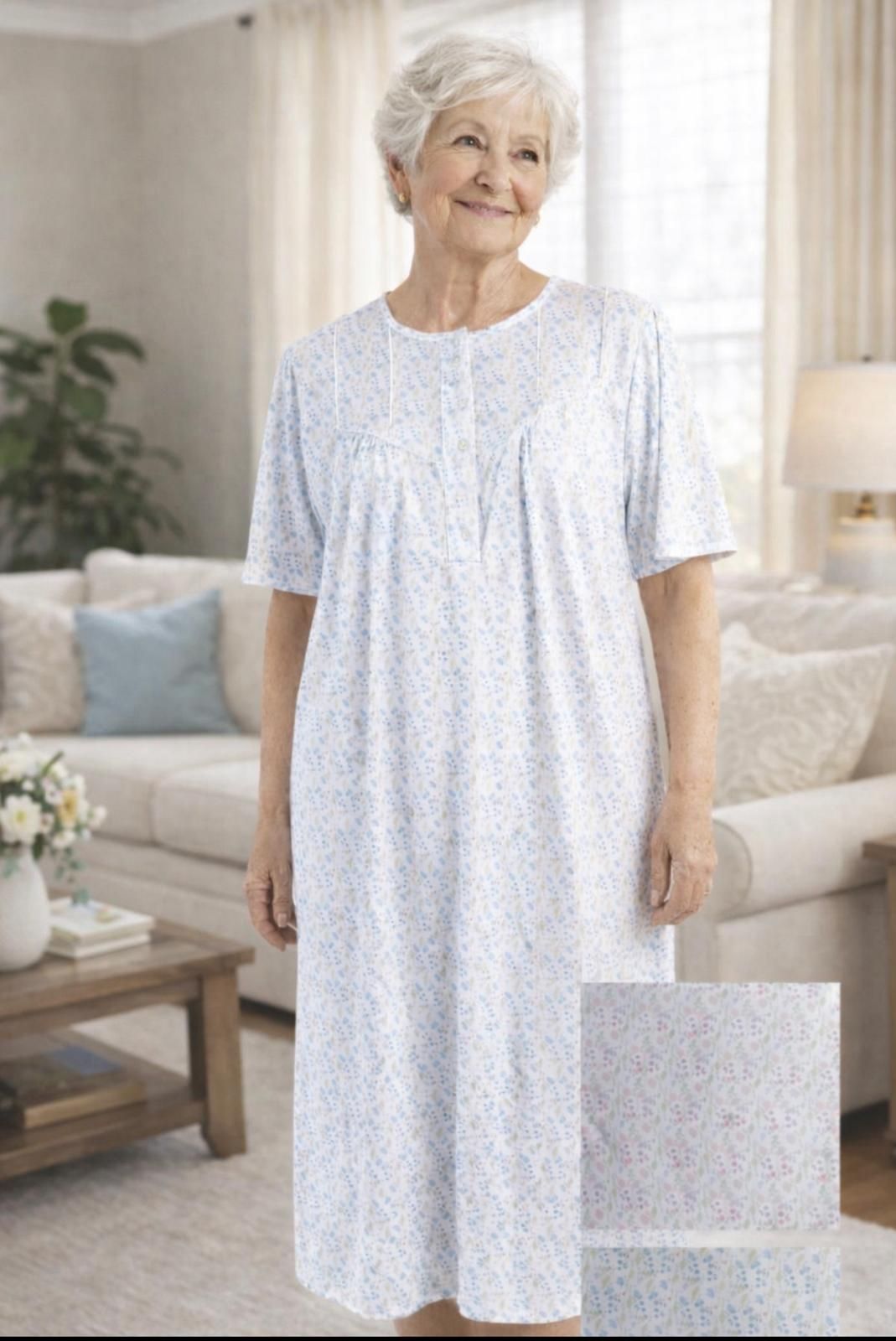 Camisón de LIN, manga corta señora, den tegido de poliamida fresquita. modelo con tapeta con botones y canesu en el pecho